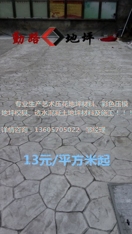 生態(tài)淮安 ,共建共享。全市圍繞美麗淮安 建設(shè),實施了一大批生態(tài)園林綠化項目,園林綠化建設(shè)保持了快速發(fā)展的勢頭。隨著生態(tài)園林的建設(shè),景觀壓花路面也出現(xiàn)在人們的視野中。壓花地坪是具有較強的藝術(shù)性和特殊裝飾要求的地面材料。壓花地坪材料是一種即時可用的含特殊礦物骨料,無機顏料及添加劑 的高強度耐磨地坪材料。其優(yōu)點是易施工、一次成型、使用期長、施工快捷、修復(fù)方便不易褪色等,同時又彌補了普通彩色道板磚的整體性差、高低不平、易松動、使用周期短等不足。 用勤路強化劑 材料制作的壓膜地坪具有耐磨、防滑、抗凍、不易起塵、易清潔、高強度、耐沖擊、且色彩和款式方面有廣泛的選擇性、成本低和綠色環(huán)保性等特點,是目前園林、市政、停車場、公園小道,商業(yè)和文化設(shè)施領(lǐng)域的理想選擇。【詳情咨詢 tel:13605705022(鄒經(jīng)理)】