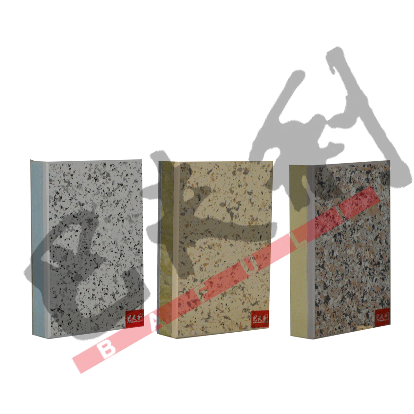 巖棉保溫裝飾一體化板:是在工廠預(yù)制成型,由飾面層、飾面板、粘合劑 、巖棉構(gòu)成。