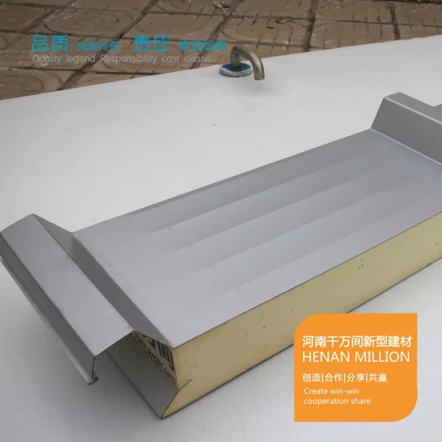 聚氨酯屋面板采用暗釘連接,板面搭接緊密。