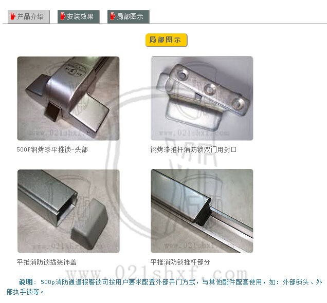 3、門(mén)內(nèi):推杠式逃生鎖體;門(mén)外:帶鑰匙保險(xiǎn)鎖頭