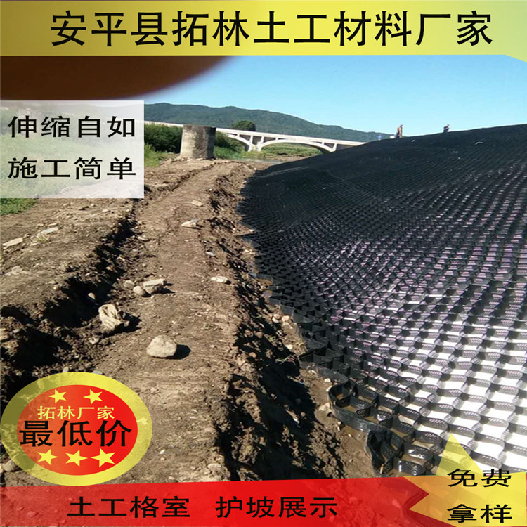 土工格室是由高強(qiáng)度的hdpe片材料,經(jīng)過強(qiáng)力焊接而形成的一片網(wǎng)狀格室結(jié)構(gòu)。一般經(jīng)超聲波針式焊接而成。因工程需要,有的在膜片上進(jìn)行打孔