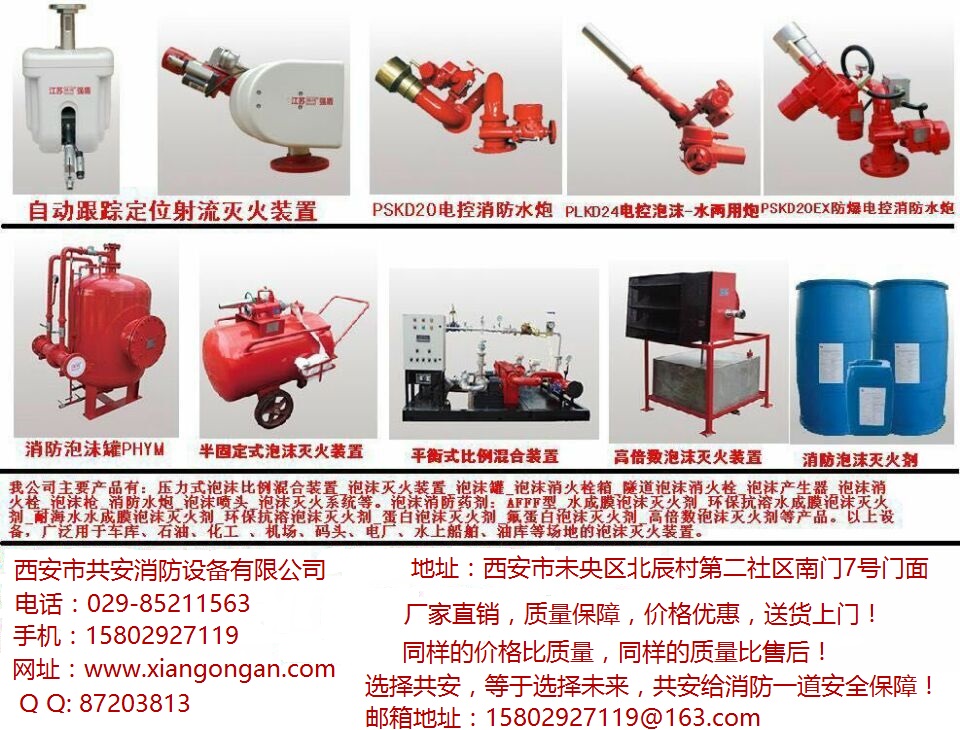陜西自動(dòng)消防水炮-西安 消防水炮-渭南固定式消防水炮-咸陽手動(dòng)式消防水炮-寶雞移動(dòng)式消防水炮-延安 智能消防水炮-榆林消防炮-漢中電動(dòng)消防水炮-安 康防爆消防水炮-商洛電控消防水炮-延安 高空消防水炮-臨渭區(qū)自動(dòng)尋的消防水炮-韓城縣隔爆消防水炮-華縣不銹鋼消防水炮-大荔縣消防泡沫炮-蒲城縣消防泡沫水兩用炮-華陰市電動(dòng)泡沫水兩用炮-潼關(guān)縣電動(dòng)泡沫兩用炮-白水高空水炮-澄城縣自動(dòng)跟蹤定位消防炮滅火系統(tǒng)-合陽縣消防水炮-富平自動(dòng)消防水炮陜西共安 專業(yè)生產(chǎn)-質(zhì)量保證-價(jià)格優(yōu)費(fèi)-產(chǎn)品優(yōu)勢:國家認(rèn)證、品質(zhì)保證、廠家直銷、全國最低價(jià)。。£兾鲝(qiáng)盾消防泡沫罐全國銷售,穩(wěn)居行業(yè)前列!技術(shù)力量雄厚,服務(wù)地域廣!