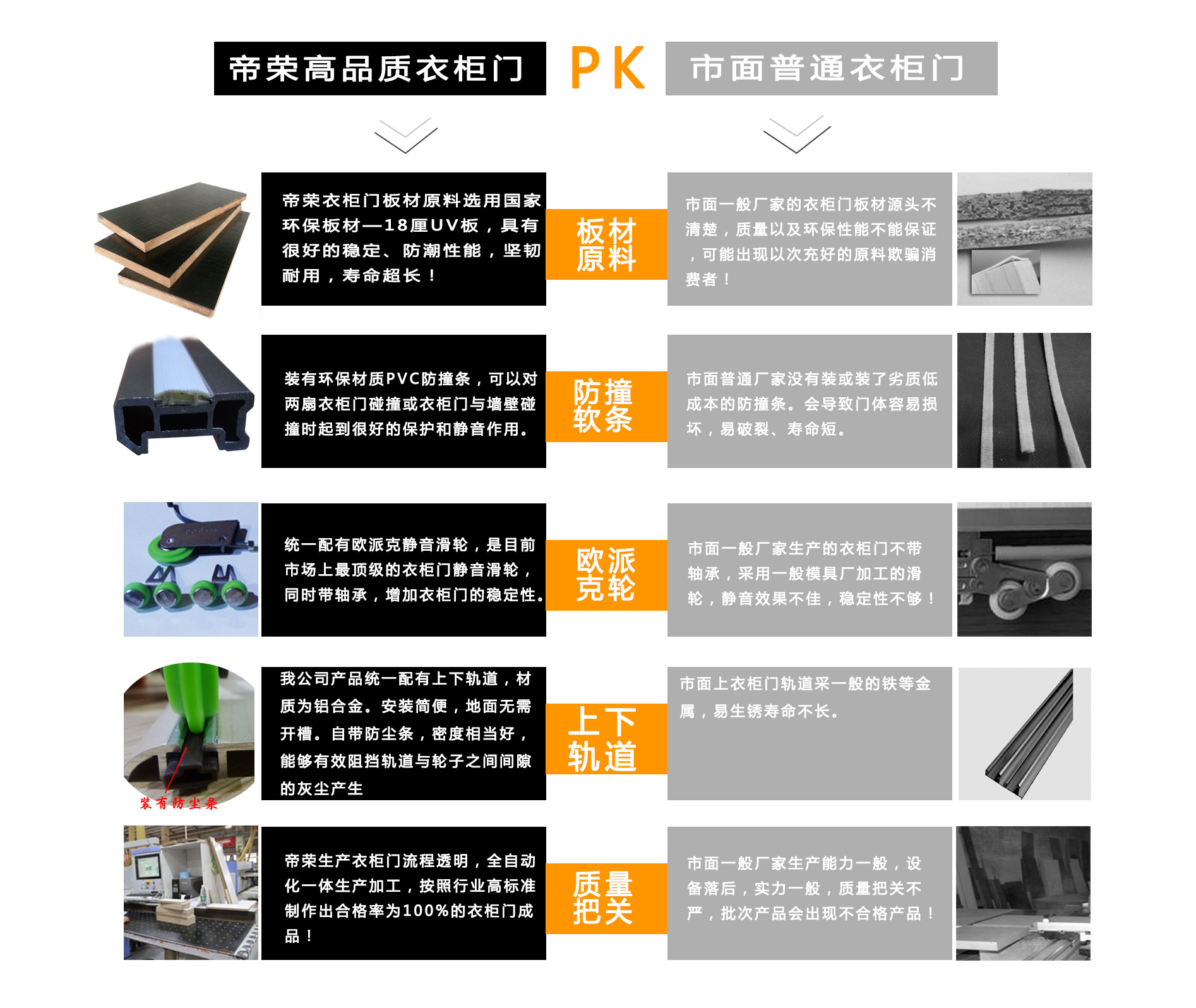 衣柜門供應(yīng)商的衣柜門制造為板材為中密板,表面平整度好,容易做造型。是一種無定型、無臭、無毒、高度透明的無色或微黃色塑性工程塑料、具有優(yōu)良的物理機(jī)械性能、尤其是耐沖擊性優(yōu)異、拉伸強(qiáng)度和耐低溫等等。通過以上兩點(diǎn)的介紹衣柜門供應(yīng)商的產(chǎn)品之后,相信大家對于烤漆和吸塑的區(qū)別有了一定的了解,各有各的千秋,所以在選的時(shí)候,并沒有哪個(gè)更好之說,都是根據(jù)自己愛好選擇就好。