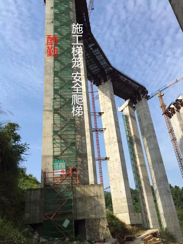 8.為保證施工人員安 全,立桿上每隔495需安 裝橫桿,梯子兩邊均安 放扶手,另外安 全梯的斜桿也要四面安 放,以加強整架的穩(wěn)定性。9.安 全爬梯每隔1.5米安 放一張帶踏步z字形樓梯,每隔4-5米需安 置扣墻件,***大搭設(shè)高度為99米。