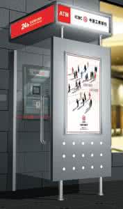 3、atm防護(hù)罩內(nèi)置的燈箱和外側(cè)的噴繪有效地提升了銀行的形象,增加了用戶對(duì)銀行的認(rèn)知度。