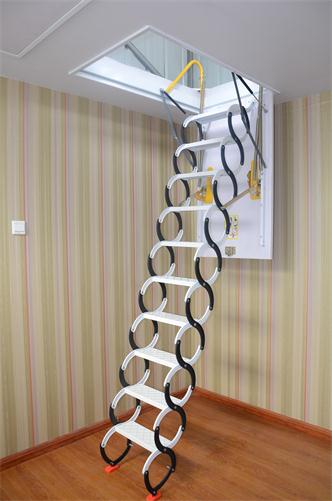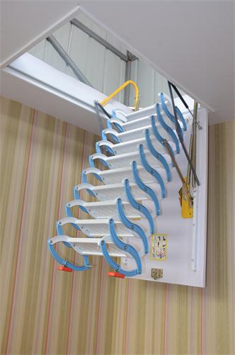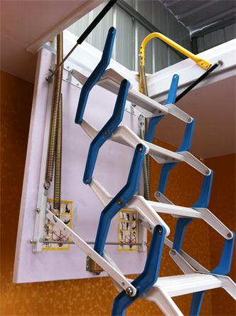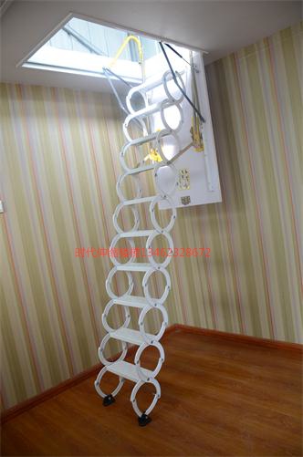 伸縮式伸拉梯,不用的時候收起來,蓋上天花板蓋,這樣整個梯子就收到天花板上了.絲毫不占用下面的空間.用的時候再打開拿下來.方便,牢固,耐用,大大便利了您的生活!
