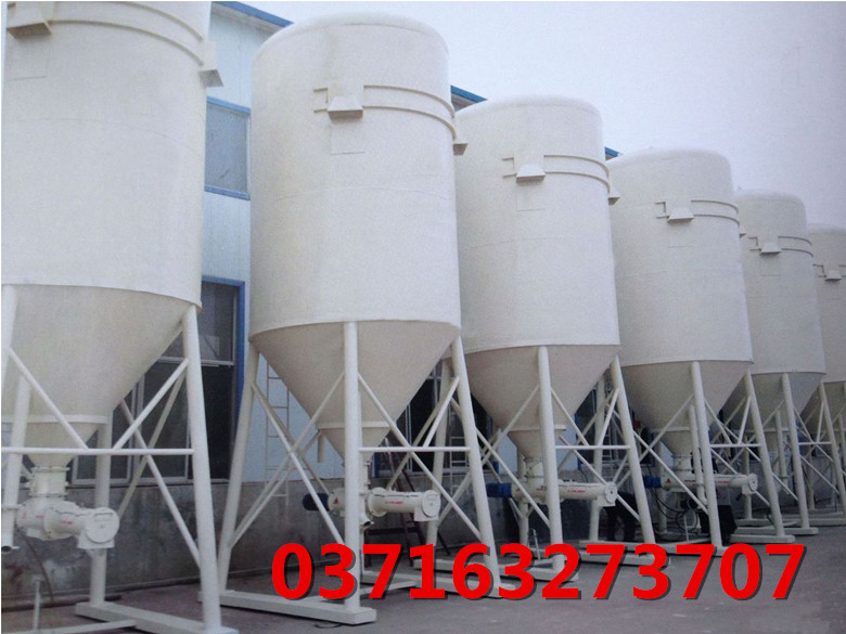 3、需要補(bǔ)充干混砂漿時(shí),將干混砂漿通過散裝干混砂漿配送專用車運(yùn)輸?shù)焦さ兀儆绍囕v的氣力輸送系統(tǒng),將砂漿輸送到罐體中,然后在罐體的排氣口使用除塵設(shè)備(布袋或水)進(jìn)行除塵。