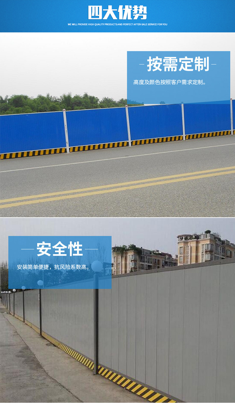 1、用途廣。適用于工地圍蔽、房地產(chǎn)圍蔽、公路圍蔽、市政圍蔽等各種工地的圍蔽工程。