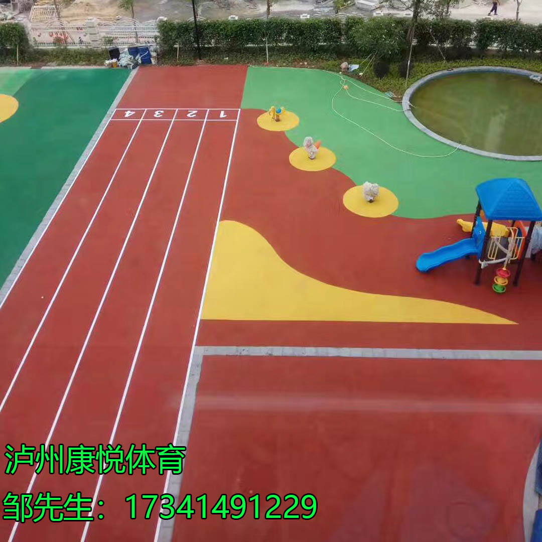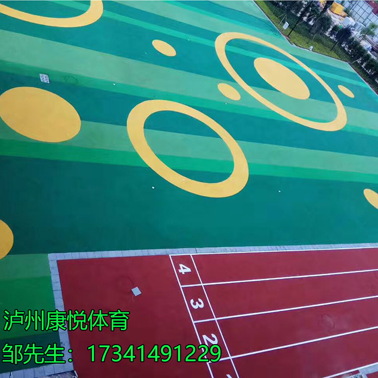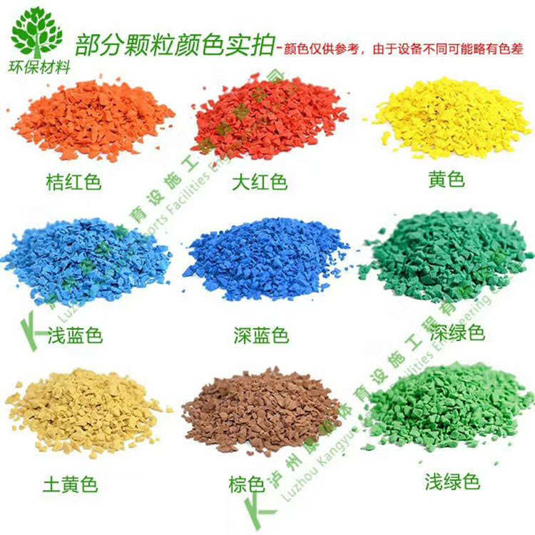 2、各種顏料橡膠顆粒或epdm顆粒為面層,黑色橡膠顆粒為底層;可設(shè)計成五彩繽紛的圖案,整體施工,無接縫,美觀。