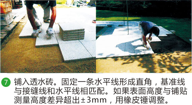 10、壓實透水磚及灰縫。請在滾壓機下粘貼像膠保護層,使用滾壓機30-40m/分左右,壓3-5次,如鋪貼面高度不一,需用橡皮錘敲平