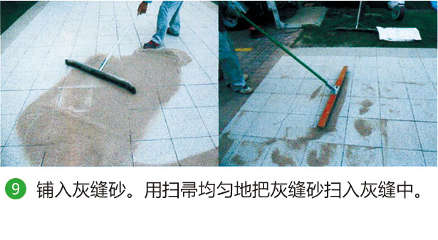 11、清掃干凈磚面后,灑水,使灰縫凝固,完成。施工完后6個小時內(nèi)不能行走,如下雨要遮住磚面