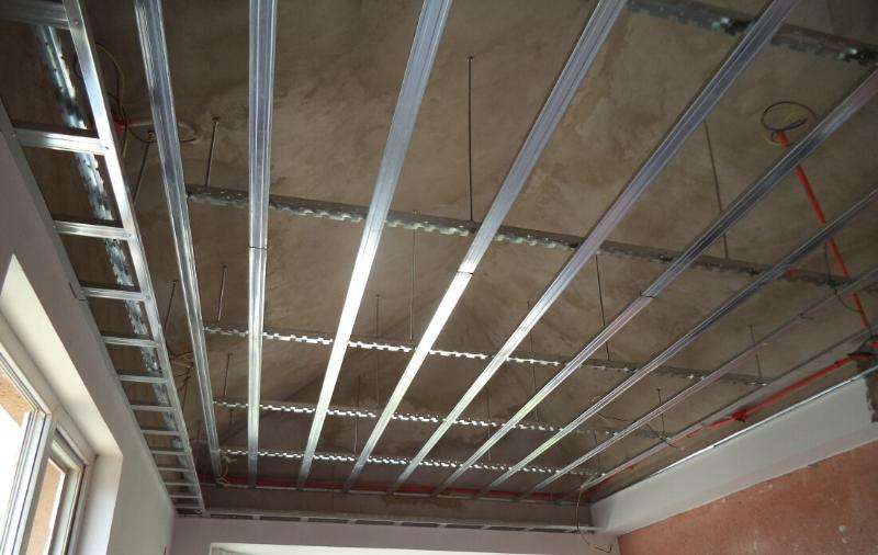 次龍骨的安 裝應(yīng)該緊貼于主龍骨,間距一般是300—600mm,采用t形鍍鋅鐵片連接件將次龍骨固定于主龍骨上,次龍骨兩端要搭在l形邊龍骨的水平翼緣上。