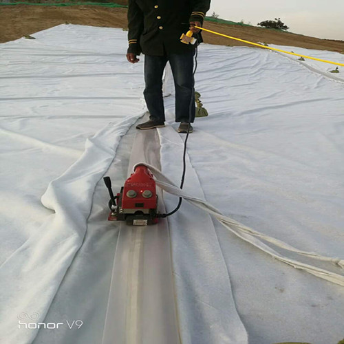 土工膜或復(fù)合土工膜的焊接、粘結(jié)、槽中拼接、周邊錨著、頂部連接及鋪設(shè)工藝,土工膜的接拼應(yīng)盡量避免拾遺補(bǔ)缺,尤其是焊接工藝,應(yīng)盡量減少漏焊、虛焊及一條焊縫有多次停頓;土工膜在槽中搭接時(shí),兩幅膜應(yīng)盡量貼緊;對(duì)于水頭高、膜較厚,或可能發(fā)生較大位移的情況,膜與基巖或混凝土連接時(shí),應(yīng)盡可能要用螺栓連接,并留有變形余幅;必須高度重視土膜施工質(zhì)量標(biāo)準(zhǔn);施工人員必須能夠根據(jù)施工條件處置各種復(fù)雜情況。土工膜邊坡穩(wěn)定分析采用極限平衡法。斜坡上的土工膜選用加糙的土工膜。土工膜下支持層采用弱透水性材料。土工膜施工時(shí)清場(chǎng)、鋪設(shè)、熱熔焊接、膜保護(hù)的措施要完善。
