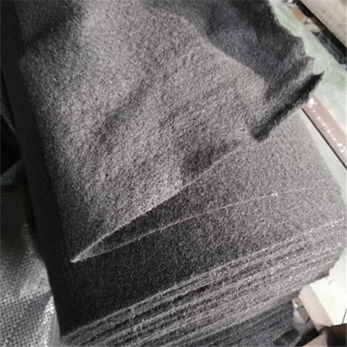 黑色滌綸短纖土工布是非織造用布的一種。是采用纖維纖度為6-12旦,長度為54-64mm的滌綸卷曲短纖維為原材料。通過無紡生產(chǎn)設(shè)備的開松,梳理,雜亂(短纖維相互交織在一起),鋪網(wǎng)(規(guī)格化纏結(jié)固著)等生產(chǎn)工藝的流程制成布狀。