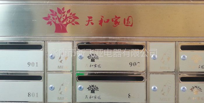 新飛亞信報(bào)箱承制的溫州天和家園豪華不銹鋼信報(bào)奶箱;