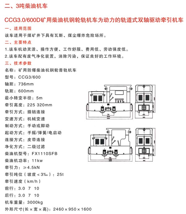 機車為動力的軌道式雙軸驅(qū)動牽引機車,它適用于煤礦井下具有瓦斯、煤塵危險場所。