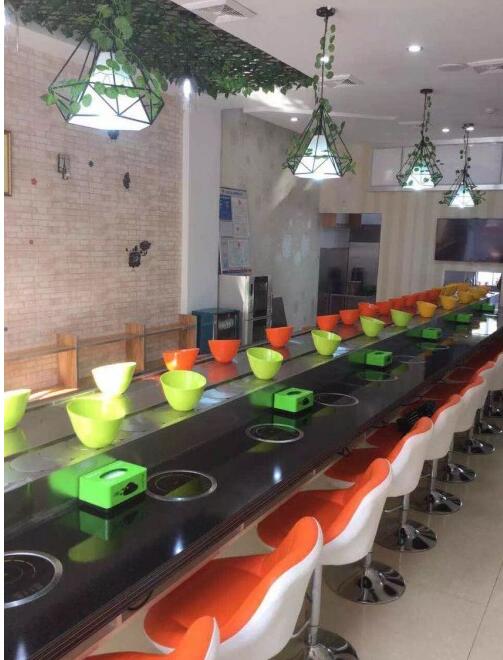 回轉(zhuǎn)火鍋徹底改變中國傳統(tǒng)火鍋的經(jīng)營模式,通過回轉(zhuǎn)機(jī)械傳送菜品,免去點(diǎn)單、傳菜環(huán)節(jié),在這種新穎、獨(dú)特、極具創(chuàng)意的模式下,即節(jié)約了單店運(yùn)營的人力成本,