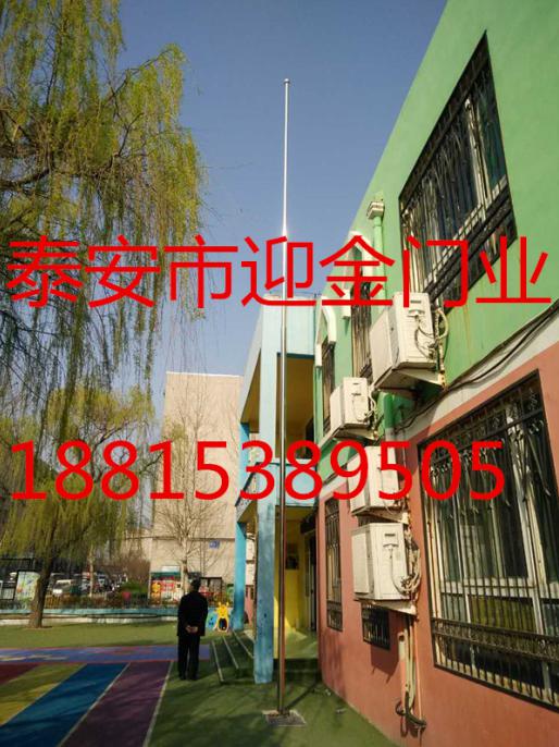 泰安 迎金幼兒園不銹鋼旗桿通過(guò)強(qiáng)勁的風(fēng)泵和吹風(fēng)裝置,使旗子在風(fēng)小或無(wú)風(fēng)的情況下同樣舒展飄蕩,莊嚴(yán)尊貴。這樣的裝置一般適用于室內(nèi)無(wú)風(fēng)或有特殊要求的地方。順風(fēng)定位裝置通過(guò)特殊的裝置,旗幟無(wú)論在風(fēng)向怎樣變動(dòng),旗子和旗繩都不會(huì)纏繞在旗桿上,始終隨風(fēng)高高飄揚(yáng)。而其他廠家非順風(fēng)定位旗桿的旗子則容易隨風(fēng)向的改變而纏在旗桿上,不僅旗子飄不起來(lái),有損形象,而且降旗困難,造成人力物力多面不良影響。