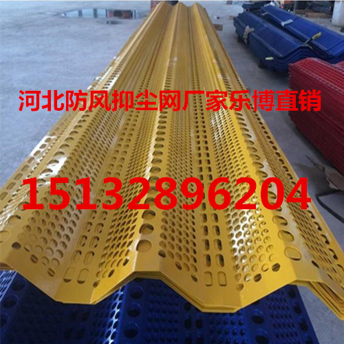 防風(fēng)抑塵網(wǎng)是利用空氣動(dòng)力學(xué)原理,按照實(shí)施現(xiàn)場環(huán)境風(fēng)洞實(shí)驗(yàn)結(jié)果加工成一定幾何形狀、開孔率和不同孔形組合擋風(fēng)抑塵墻,使流通的空氣(強(qiáng)風(fēng))從外通過墻體時(shí),在墻體內(nèi)側(cè)形成上、下干擾的氣流以達(dá)到外側(cè)強(qiáng)風(fēng),內(nèi)側(cè)弱風(fēng),外側(cè)小風(fēng),內(nèi)側(cè)無風(fēng)的效果,從而防止粉 塵的飛揚(yáng)。擋風(fēng)抑塵墻由獨(dú)立基礎(chǔ)、鋼結(jié)構(gòu)支撐、擋風(fēng)板三部分組成。