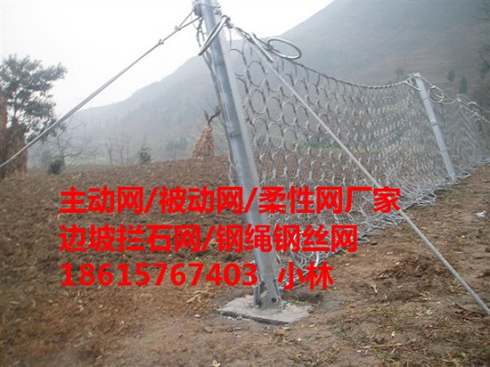 主動(dòng)防護(hù)網(wǎng):主動(dòng)防護(hù)網(wǎng)主要特征構(gòu)成分為鋼絲繩網(wǎng)、鋼絲格柵和高強(qiáng)度鋼絲格柵三類(lèi)。,鋼絲繩網(wǎng)是用鋼絲繩編制并在其交叉結(jié)點(diǎn)處專(zhuān)用“十”字扣固定的成品網(wǎng),其網(wǎng)孔呈菱形,通常也焦作菱形網(wǎng)。。 gps2型主動(dòng)邊坡防護(hù)網(wǎng) 網(wǎng)型: so/2.2/2.25*10.2 支撐繩:φ16系統(tǒng)鋼絲繩錨桿+φ12橫向支撐繩 縫合繩:用≥φ2.2鐵線(xiàn)縫合 主要防護(hù)功能: 坡面加固,抑制崩塌和風(fēng)化剝落,溜塌的發(fā)生,限制局部或少量落石運(yùn)動(dòng)范圍。危石塊體較小且壽命要求較短時(shí)采用。