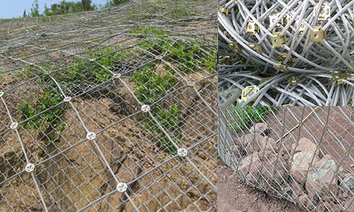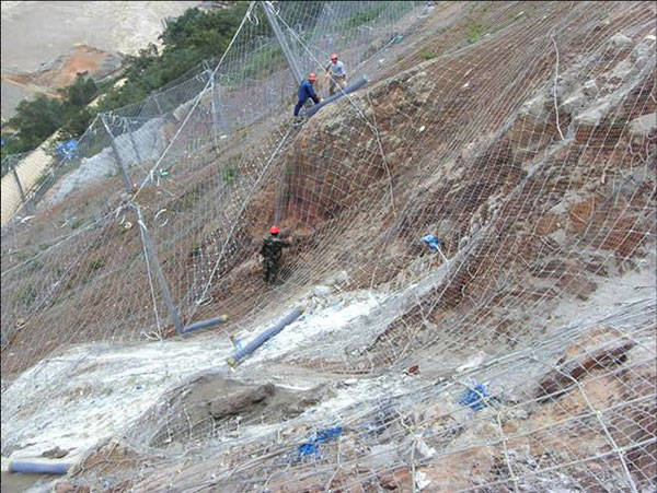 規(guī)格型號介紹:gar1(普通簡單型) 鋼絲繩網(wǎng) 邊沿(或上沿)鋼絲繩錨桿+支撐繩+縫合繩(do/08/300鋼繩網(wǎng)+上下沿錨固+上下沿(或橫向)支撐繩) 圍護(hù)作用,限制落石運(yùn)動范圍,部分仰制崩塌的發(fā)生