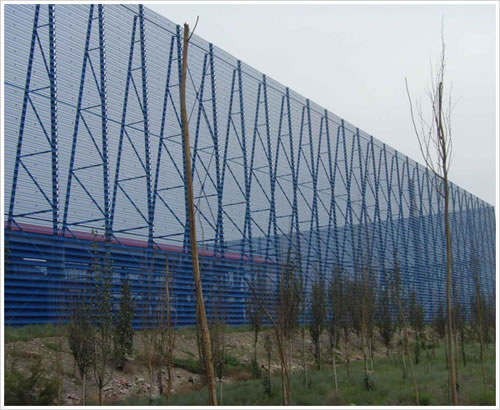 防風(fēng)抑塵網(wǎng)是針對(duì)露天散料堆場(chǎng)揚(yáng)塵污染治理的技術(shù),它被廣泛應(yīng)用于港口碼頭、火力發(fā)電、煤礦、焦化、鋼鐵、洗煤、水泥等企業(yè)的煤場(chǎng)和料場(chǎng)揚(yáng)塵污染治理。該產(chǎn)品充分利用空氣動(dòng)力學(xué)原理,對(duì)揚(yáng)塵的源頭——風(fēng)力進(jìn)行有效控制,限度地衰減來(lái)流風(fēng)的動(dòng)能,降低其起塵和攜塵能力,從而達(dá)到抑制揚(yáng)塵的效果,綜合擋風(fēng)抑塵率可達(dá)80%以上,已經(jīng)作為揚(yáng)塵污染的主要治理技術(shù)加以應(yīng)用。