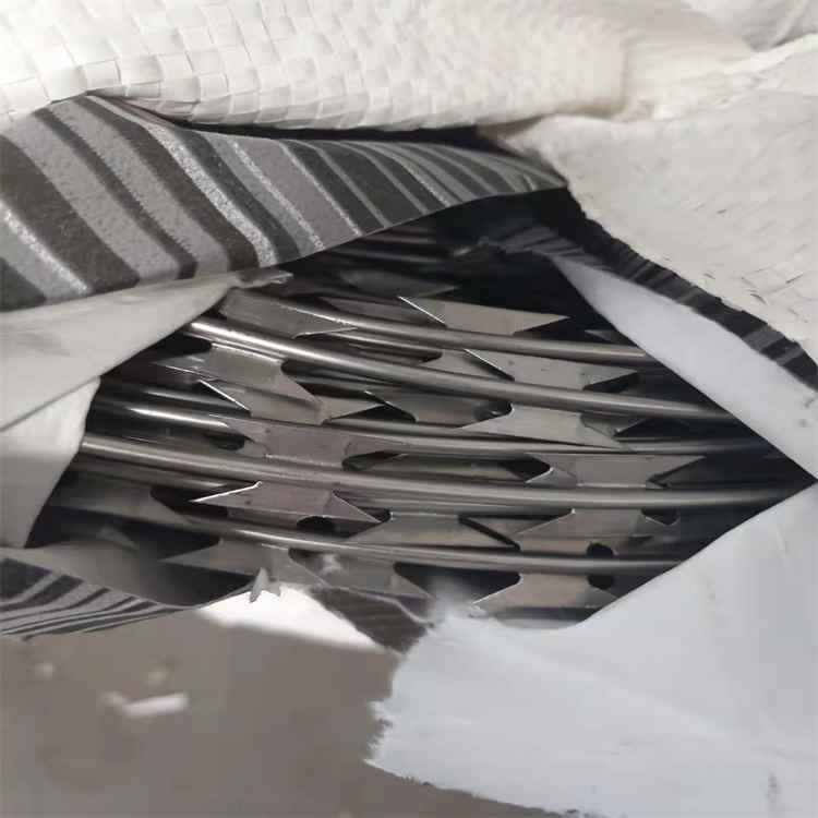 不銹鋼刀片刺繩的芯線及板材都是以不銹鋼為原料,它采用鋼板沖壓成型包附于鋼絲之上,由銳利尖角不銹鋼薄板做刀片,高張力的鋼絲做芯而組合成的一起不銹鋼刀片刺繩的美麗的光澤度即美觀又讓人不寒而栗,起到了很好的阻嚇的作用。
