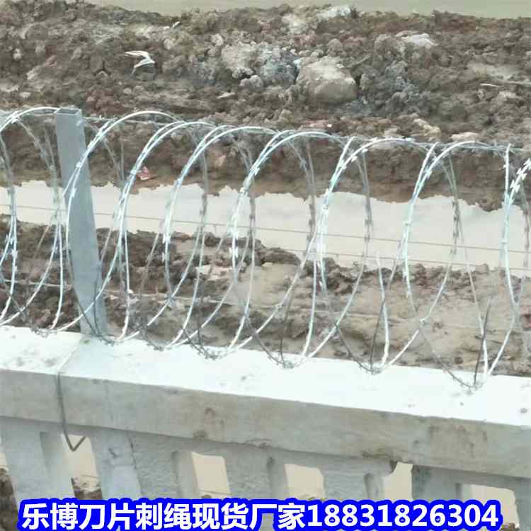 鍍鋅刀片刺繩用途:刀片刺繩已被廣泛應用于許多國家的工礦企業(yè)、園林公寓、邊防哨所、軍事領(lǐng)域、監(jiān)獄、看守所、政府建筑物和其他國家的安 全設施。
