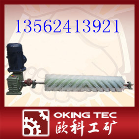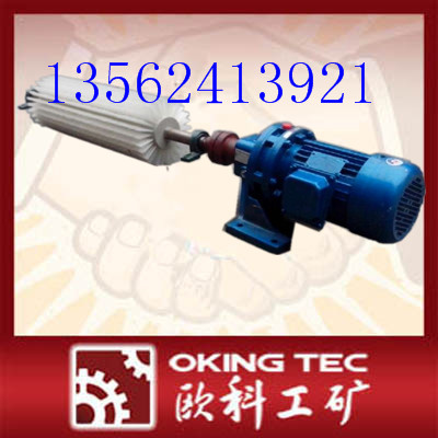okxq-ⅰ型旋轉式清掃器由電機、減速機、清掃滾筒、聯軸器、軸承座、調節(jié)架組成。