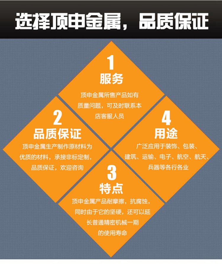6、服務(wù):充分理解客戶(hù)的需求,有效衡量原材料的利用,最大化的縮短供貨_交期_和提高供貨_質(zhì)量,為客戶(hù)提供完善的從原材料選擇,切割、探傷、加工、貼膜、包裝、運(yùn)輸?shù)囊粩堊咏鉀Q方案。