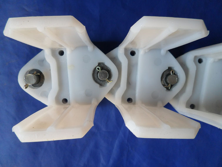 采煤機(jī)用電纜夾板重量輕、體積小、結(jié)構(gòu)緊湊,安 裝方便快捷,維護(hù)維修簡(jiǎn)單,且使用壽命長(zhǎng),抗拉強(qiáng)度、抗沖擊力大等。其優(yōu)點(diǎn)是內(nèi)襯鋼骨架承載拖曳力,保護(hù)電纜或水管不受外力作用,尼龍66中添加阻燃、抗靜電等助劑 ,具有阻燃、抗靜電作用。相鄰電纜夾易于連接,根據(jù)采煤機(jī)工作面需要可以任意延長(zhǎng),在拖曳過程中保護(hù)電纜或水管可靠工作,不被折斷或破損,提高生產(chǎn)效率,降低維護(hù)維修成本