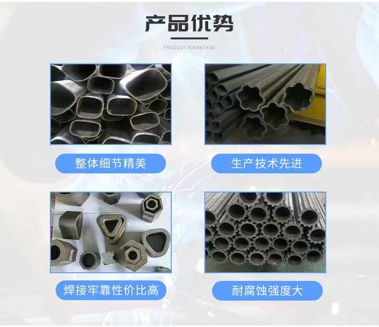 異型管可分為橢圓形異型管、三角形異型管、六角形異型管、菱形異型管、八角形異型管、半圓形異型管,不等邊六角形異型管、五瓣梅花形異型管、雙凸形異型管、雙凹形異型管、瓜子形異型管、圓錐形異型管、波紋形異型管。