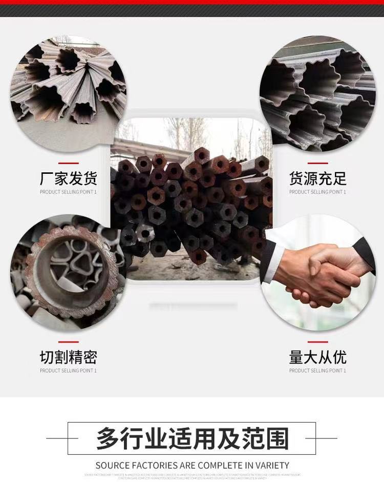 專業(yè)生產(chǎn) ;橢圓管、面包管、梅花管、三角鋼管、六角鋼管、八角鋼管、內(nèi)圓外六角無縫鋼管等多邊形不規(guī)則異型鋼管,可來圖紙定做,根據(jù)客戶的需求加工異型鋼管,填補(bǔ)了國內(nèi)對異型鋼管的需求。