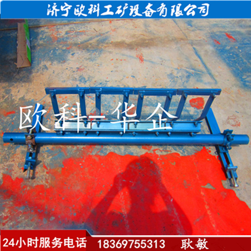 h型合金橡膠清掃器安裝于頭部卸料滾筒處,清楚輸送帶上的粘附物料完成一次清掃。
