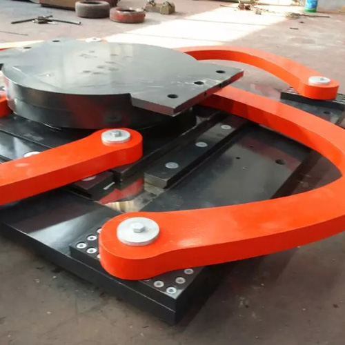 2.球形鋼支座通過球面聚四氟乙烯板的滑動來實現(xiàn)支座的轉(zhuǎn)動過程,轉(zhuǎn)動力矩小,而且轉(zhuǎn)動力矩只與支座球面半徑及聚四氟乙烯板的摩擦系數(shù)有關(guān),與支座轉(zhuǎn)角大小無關(guān),特別適用于大轉(zhuǎn)角的要求,設(shè)計轉(zhuǎn)角可達(dá)0.05rad.