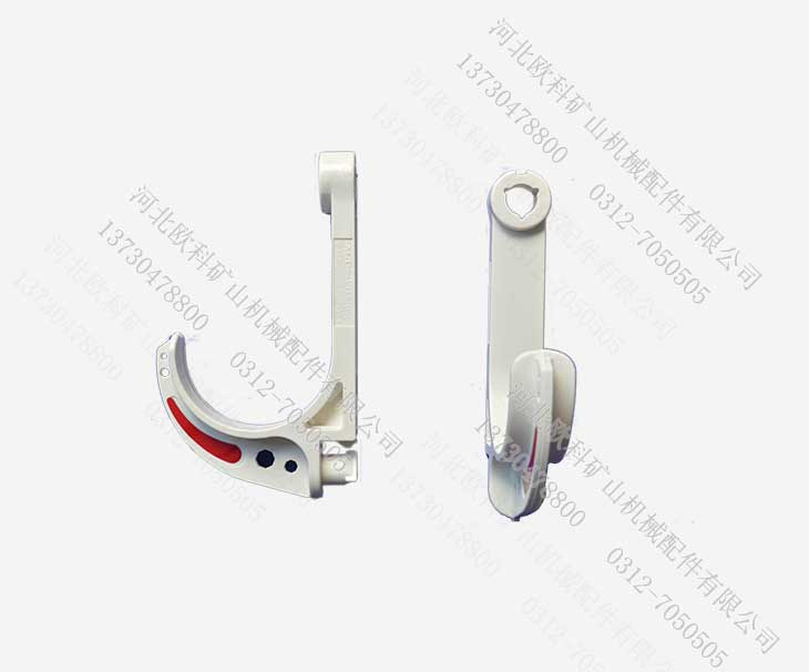 保定歐科有限公司致力于生產綜采煤機用電纜夾,電纜夾板,采用高分子改性復合材料,強度高、耐沖擊、抗阻燃,抗摩擦,韌性好。該產品能更好的對采煤機電纜和水管提供保護,電纜夾由夾體、彈簧、銷軸和開關銷等組成,夾體的h型上下內側各開有一個導向槽,在導向槽的兩端開有上下對應的4個方孔,夾體的一側是兩個并行的聯(lián)接板,另一側有一個聯(lián)接板,在每個聯(lián)接板上都開有相同孔徑的圓孔。它的夾體采用了以鋼板為骨架,表面溶注尼龍材料制成,外形則為中心牽引式不對稱的h型結構。電纜夾固定電纜與水管的方法是采用彈簧卡鎖固定方式實現(xiàn)的。本實用新型適用面廣,可在高檔普采與綜采上使用。