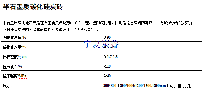 半石墨質(zhì)碳化硅炭磚是在石墨質(zhì)炭磚配方中加入一比例的碳化硅,目地是提高碳磚的導(dǎo)熱率、高機械強度、高耐磨性、高腐蝕性、高體積密度、低灰分,增加煤瀝青的殘?zhí)柯?同時提高炭塊的強度和耐磨性等典型理化。