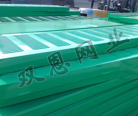 金屬百葉窗聲屏障也成為百葉窗聲屏障: 屏體面板板材上百葉孔,聲波撞到聲屏障,就會陷到孔內(nèi),而板材中間是一層厚厚的吸音棉,噪音陷進里面去不容易出來,吸音棉外敷無堿 恨水玻璃布,這類百葉型設計充分考慮防水、防塵,其角度設為45度,在揚塵或淋雨環(huán)境中吸聲性不受影響,構(gòu)造已設置排水措施,避免構(gòu)件內(nèi)部積水。屏體表面可進行噴塑處理,防腐性強,使用壽命長。