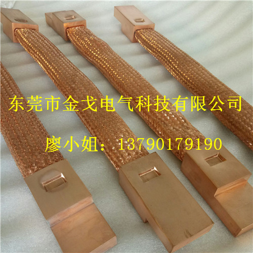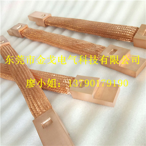 特點(diǎn):中間采用銅編織線作為導(dǎo)體,銅編織線是用無氧銅絲編織,線經(jīng)0.10mm,0.12mm ,0.15mm單絲,根據(jù)客戶要求,柔軟度,通電強(qiáng)度等特制而成.接線端采用無氧銅管壓制而成,平整,光亮