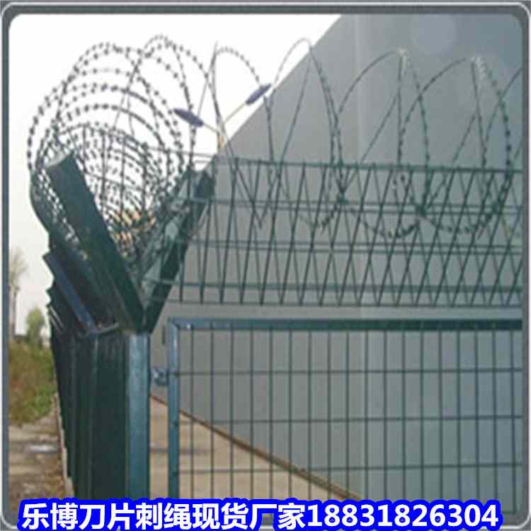 四、噴塑刀片刺繩按照安 裝方法不同可分為:(蛇腹式) 螺旋式噴塑刀片刺繩,直線型噴塑刀片刺繩,平板式噴塑刀片刺繩,噴塑刀片刺繩焊接網(wǎng)等。