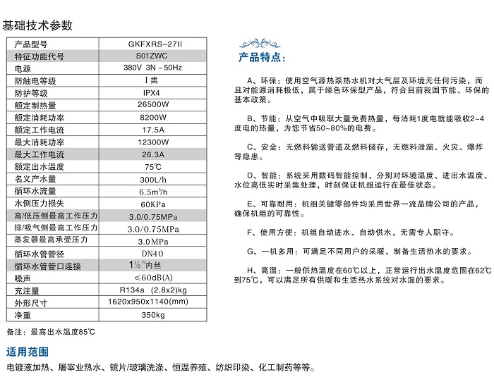 3、 環(huán)保:熱泵產(chǎn)品無任何燃燒排放物,制冷劑選用了環(huán)保制冷劑r417a,對臭氧層零污染,是較好的環(huán)保型產(chǎn)品。