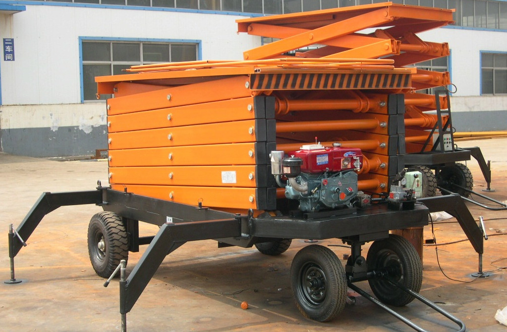 產(chǎn)品說明:移動剪叉式升降機的剪叉結(jié)構(gòu)主要采用鋼鐵矩形管制作,它的剪叉機械結(jié)構(gòu),使升降臺起升有較高的穩(wěn)定性,寬大的作業(yè)平臺和較高的承載能力,使高空作業(yè)范圍更大、并適合多人同時作業(yè)。平臺升降動力為手動或電動,電手兩用或遙控器控制,在停電時仍可使用。本產(chǎn)品具有移動靈活、升降平穩(wěn)、操作方便、載重量大等特點。升降動力分為220v或380v電源(也可以用電瓶、柴油機為升降動力),采用意大利和國產(chǎn)液壓泵站,臺面設(shè)有防滑絕緣塑質(zhì)扣板,更換方便,整體美觀大方。