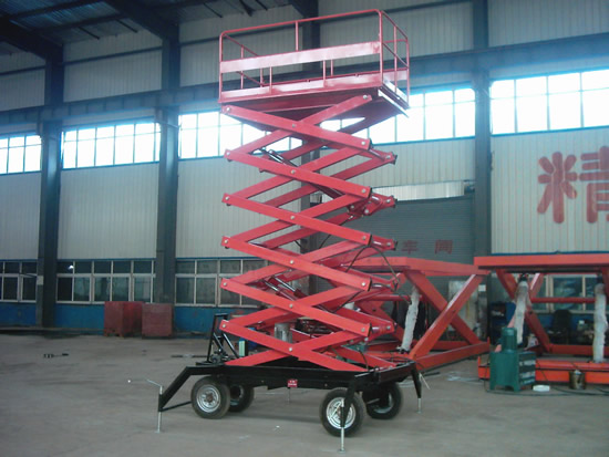 移動剪叉式升降機:舉升機構(gòu)采用高強度錳鋼鉅形管制作。設(shè)有防止升降機超載的安 全保護裝置。設(shè)有防止液壓管路破裂的安 全保護閥。設(shè)有停電情況下的應(yīng)急下降裝置。該產(chǎn)品適用于各行業(yè)高空設(shè)備安 裝、檢修等可移動性高空作業(yè)。根據(jù)不同要求可選擇不同動力形式(如:三相交流電源、單相交流電源、直流電源和內(nèi)燃動力等),加配上手動液壓裝置,可在停電或無電源場所照常升降工作,并可加伸縮平臺,在平臺長度不足時可延伸至所需位置,從而提高工作效率。