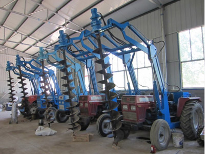 該機(jī)為前置式鉆孔,挖坑機(jī)比其他廠家后置式鉆孔機(jī),操作簡單,最大的特點(diǎn)是,后置式鉆孔機(jī),無論是液壓傳動還是電機(jī)傳動鉆孔時(shí)僅僅依靠螺旋葉片的螺旋自行往下鉆,該機(jī),住支撐臂配有2條20t液壓油缸,再鉆的同時(shí)可以將鉆桿下壓,大大增加速度,就向拿螺絲刀擰木螺絲,如果不給螺絲力依靠螺絲的螺紋型,挖坑機(jī)也可以鉆到木頭里,如果拿螺絲刀給螺絲推力將大大的增加速度。該機(jī)的鉆孔速度是其他廠家生產(chǎn)的同類產(chǎn)品無法比擬的,一般鉆孔機(jī)鉆孔速度最快要10來分鐘甚至20分鐘鉆一個(gè)孔,并且遇到堅(jiān)硬土質(zhì)更是難以鉆孔。操作方面還至少需要2個(gè)人完成,一個(gè)人操作機(jī)器,一個(gè)人完成清土工作。本機(jī)采用50或65拖拉機(jī),馬力大,動力充沛。鉆孔無需清土,一個(gè)人即可完成工作,鉆到深度后,可靠兩條油缸將鉆桿提起,土都附著在螺旋葉片上,很少有回落。提起后只需將鉆桿正反轉(zhuǎn)動記下土就會自然落下。挖坑機(jī)可以實(shí)現(xiàn)單人操作,車到孔成,隨鉆隨走。大大提高工作效率。