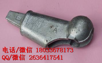 杵座楔形線夾 鐵路金具 杵座楔形線夾選用牌號為zg270-500的鑄造碳鋼,采用熔模精密鑄造工藝制造,表面三級熱浸鍍鋅。