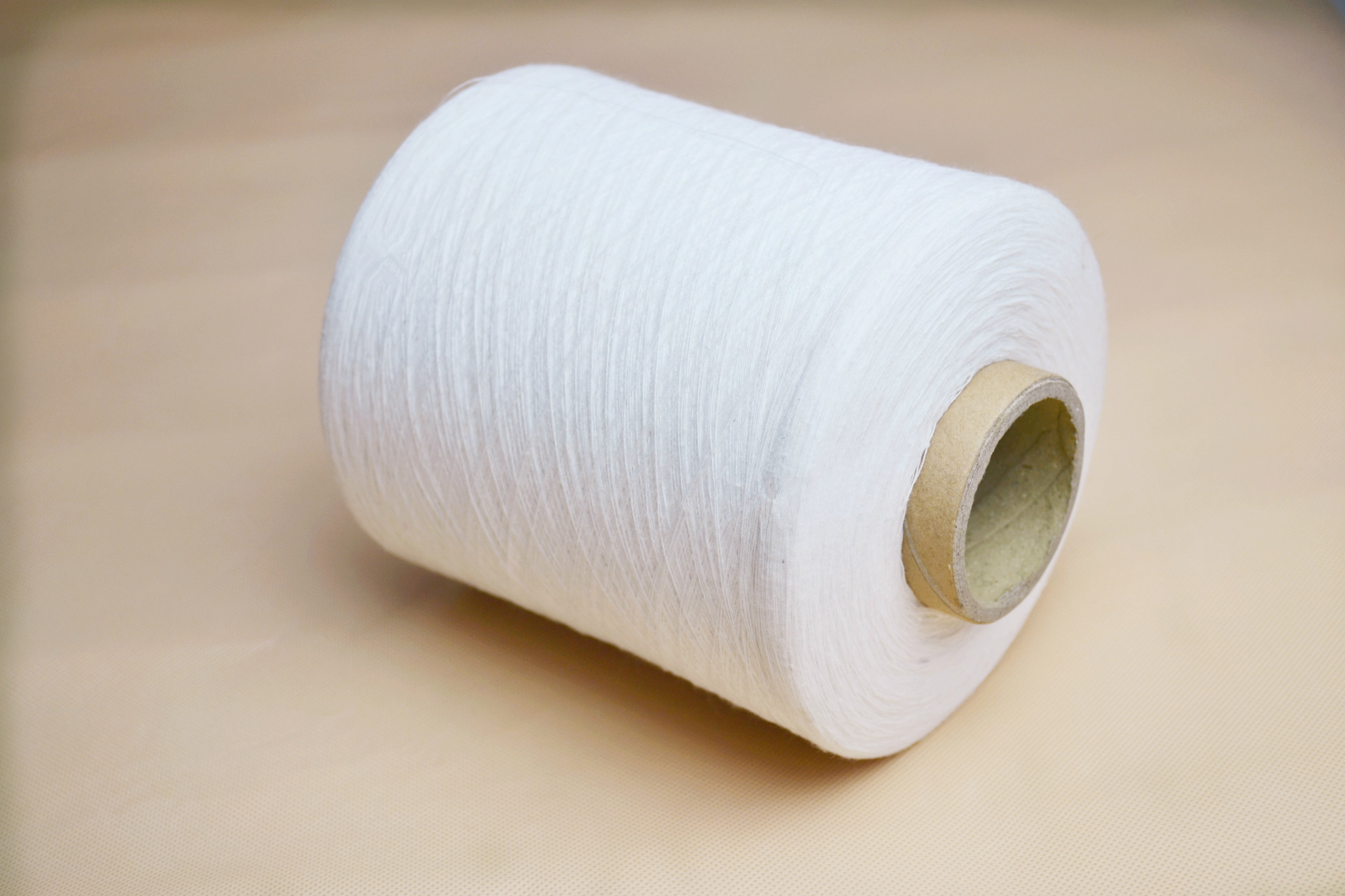 包芯紗一般以強(qiáng)力和彈力都較好的合成纖維長絲為芯絲,外包棉、毛、粘膠纖維等短纖維一起加捻而紡制成的紗。包芯紗兼有長絲芯紗和外包短纖維的優(yōu)良性能。比較常見的包芯紗有滌棉包芯紗,它以滌綸長絲為芯紗,外包棉纖維。還有氨綸包芯紗,它是以氨綸長絲為芯紗,外包其他纖維制成的紗線。由這種包芯紗制成的針織物或牛仔褲料,穿著時伸縮自如,舒適合體。