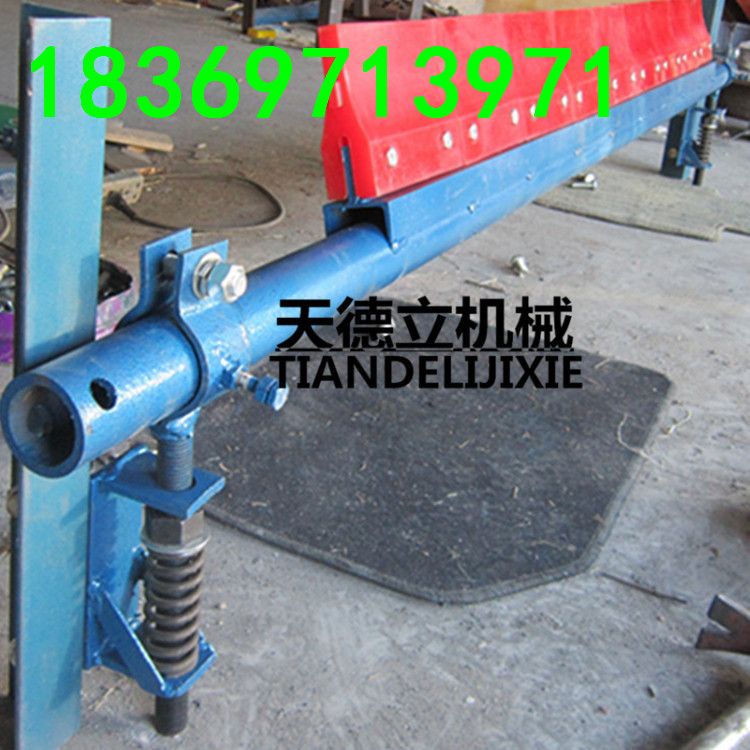如果清掃裝置良好,對(duì)托輥、輸送帶等的使用壽命都可以延長(zhǎng)。由此可見,清掃器在帶式輸送機(jī)有著不可忽視的作用。在運(yùn)行中,如果想人為清除機(jī)尾滾筒附著物,往往容易發(fā)生嚴(yán)重人身傷亡事故。因此,為保證帶式輸送機(jī)正常運(yùn)轉(zhuǎn),必須將輸送帶上的附著物清掃干凈。
