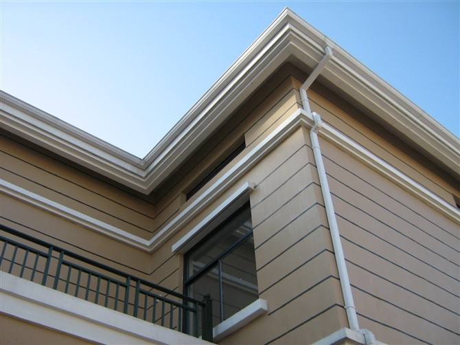 推薦方法:針對檐口掛瓦條過高的節(jié)點安 裝問題,首先230或300裝飾檐溝上開口尺寸到達23-30公分有效承接屋面雨水,解決了屋面排水及尿墻尿檐等問題,定制泛水板有效的解決了屋面瓦與屋面結構縫隙過大人眼看上去產生空洞感,也解決了雨水回流產生的尿檐尿墻問題。