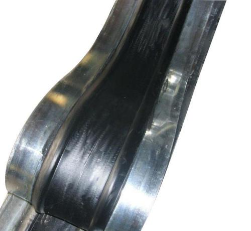 鋼邊止水帶材料選擇及要求鋼邊:選用鍍鋅鋼邊;橡膠:通常選用天然橡膠、氯 丁橡膠、三元乙丙橡膠等。要求橡膠和鋼邊能有效地粘結(jié),它們之間的粘結(jié)強(qiáng)度(剝離強(qiáng)度)應(yīng)達(dá)80~10n/2.5mm,以使它們?cè)谕饨鐥l件變化情況下不被拉脫。通常鋼邊邊緣沒有工藝孔,安 裝澆筑混凝土?xí)r,利用工藝將止水帶和鋼邊用細(xì)鐵絲纏繞固定,以保證澆搗密實(shí),使鍍鋅鋼片和混凝土有效地牢固粘附。