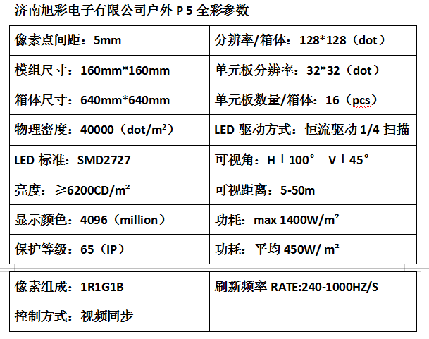 濟南旭彩電子有限公司戶外p 5全彩參數(shù)像素 點間距: